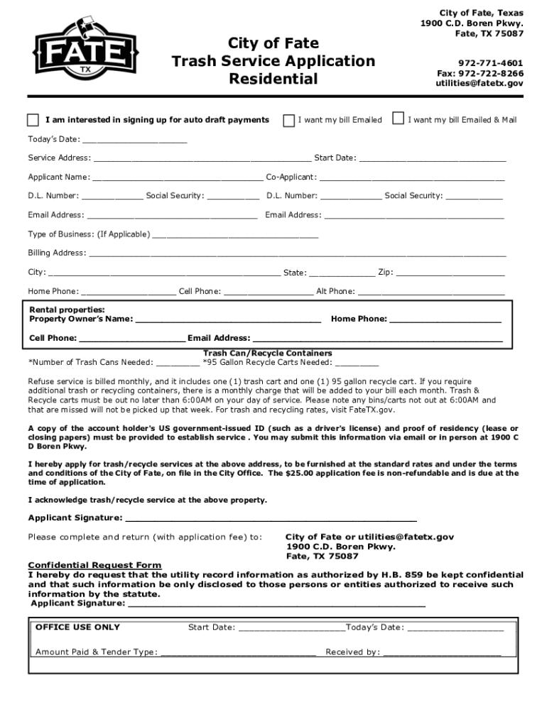 Get the free Form CenterResidential Trash Only Application