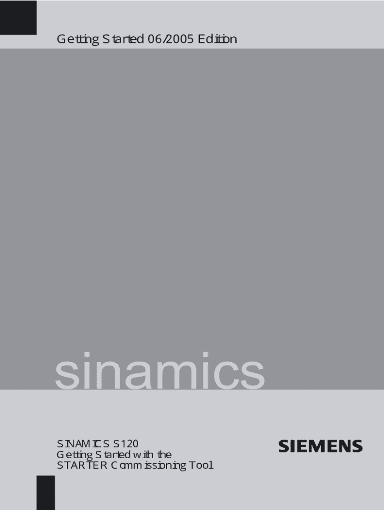 Getting Started 06/2005 EditionVLQDPLFV SINAMICS S120Getting Started withthe STARTER Commissioning ToolSINAMICS S120 Getting Started with the STARTER Commissioning ToolManufacturer/service documentation