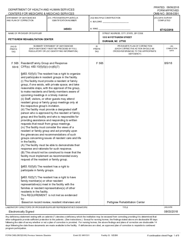 PRINTED: 08/06/2018 FORM APPROVEDDEPARTMENT OF HEALTH AND HUMAN SERVICES CENTERS FOR MEDICARE & MEDICAID SERVICES STATEMENT OF DEFICIENCIES AND PLAN OF CORRECTION(X1) PROVIDER/SUPPLIER/CLIA IDENTIFICATION