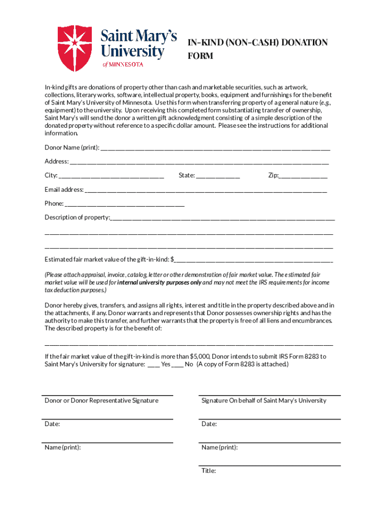 The in-kind contributions form serves to formally document donated goods and services. This essential document helps both donors and nonprofits confirm the value and details of contributions, which is critical for legal and tax considerations. For donors, it provides evidence for tax deductions, while nonprofits must maintain accurate records to ensure compliance with various regulations.