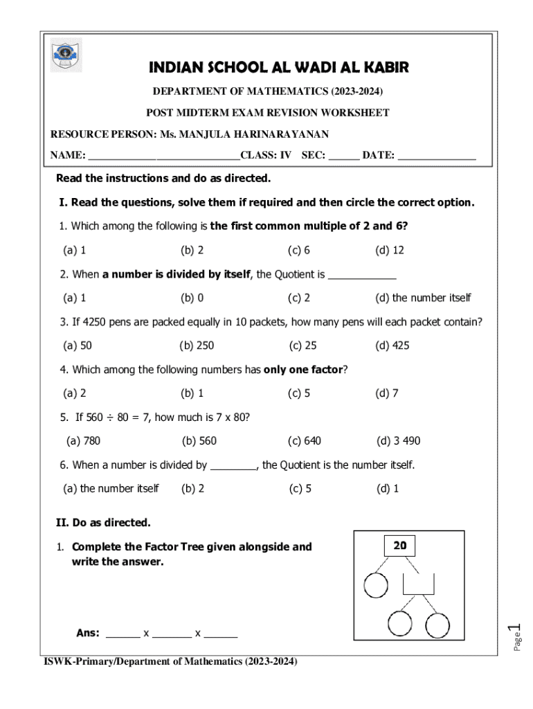 Get the free Worksheet - IV 2022-2023 Mathematics