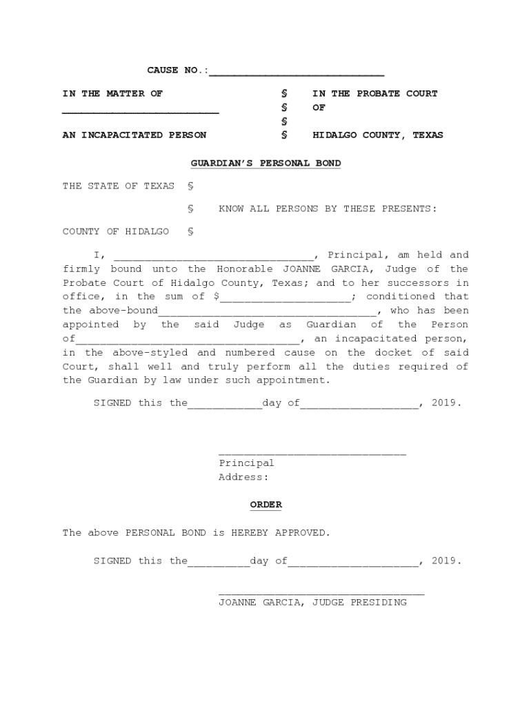 Get the free GUARDIAN'S PERSONAL BOND AND AFFIDAVIT.docx