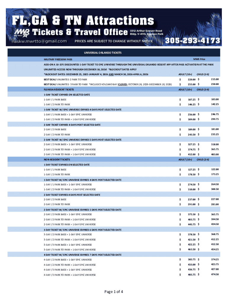 UNIVERSAL ORLANDO TICKETS MWR PriceMILITARY FREEDOM PASSADDON A 1015% DISCOUNTED 1DAY TICKET TO EPIC UNIVERSE THROUGH THE UNIVERSAL ORLANDO RESORT APP AFTER PASS ACTIVATION AT THE PARK UNLIMITED ACCESS