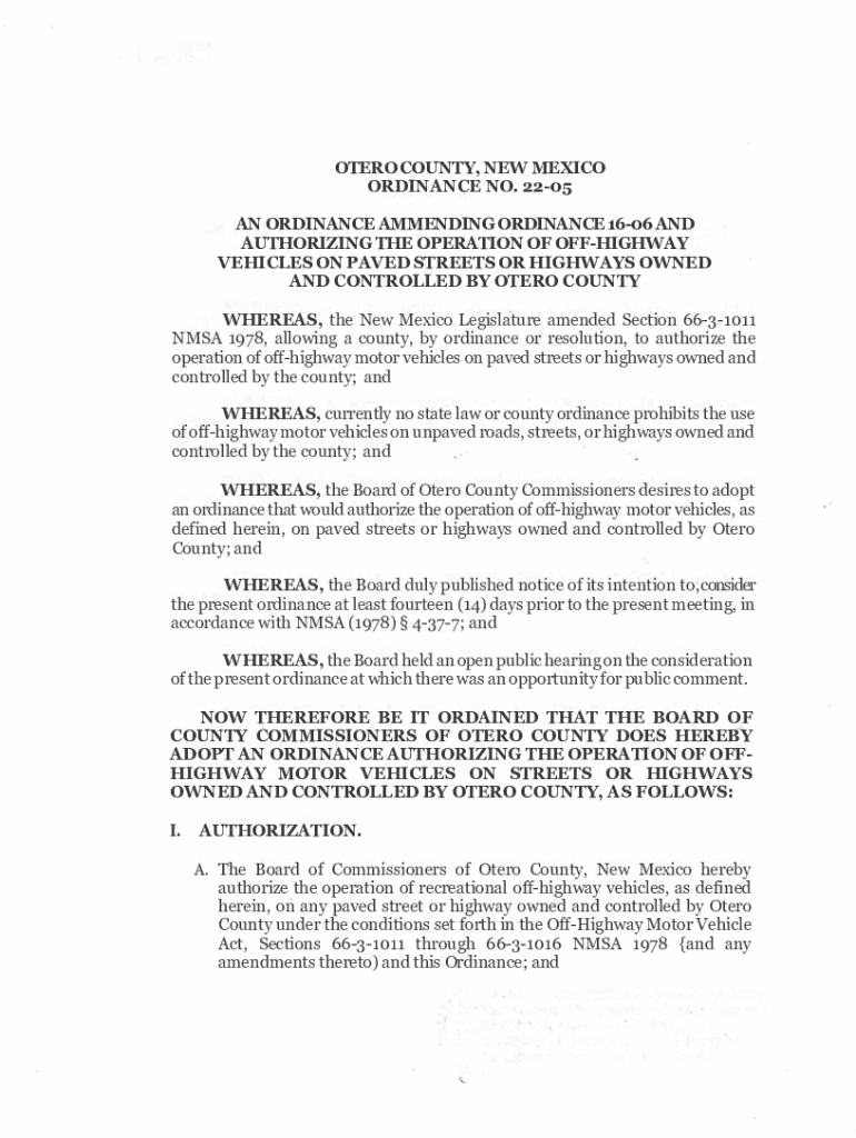 How to fill out off-highway vehicle ordinances fact