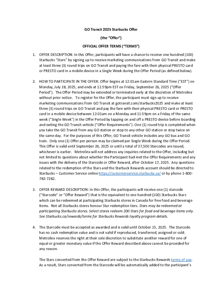 Get the free Go Transit 3X round trip rides with and get 100 Starbucks ...