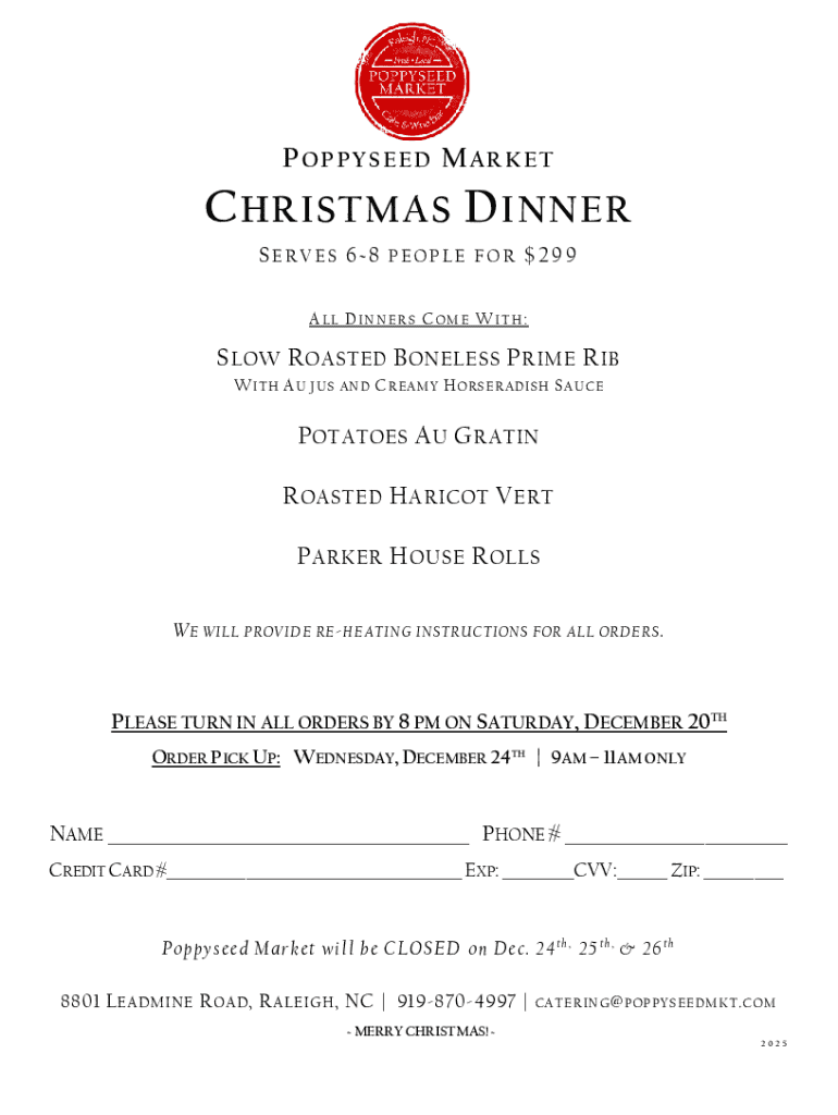 Get the free Order Poppyseed's Delicious Christmas Dinner To-Go