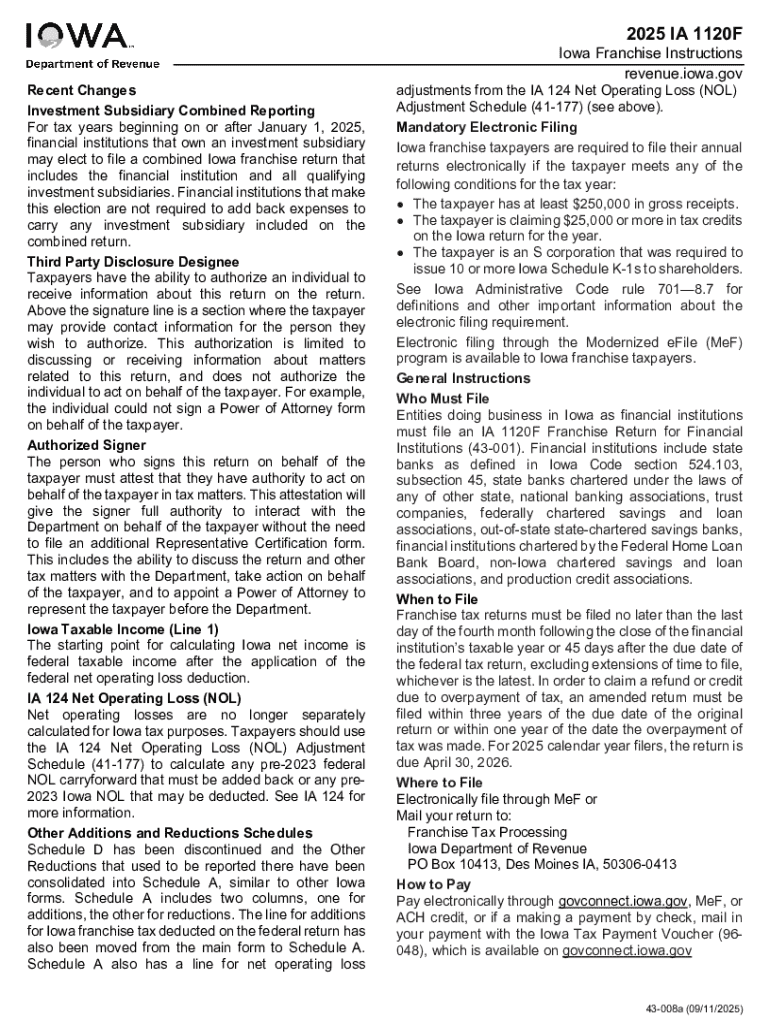 Get the free 43-008 IA 1120F Instructions - Iowa Department of Revenue