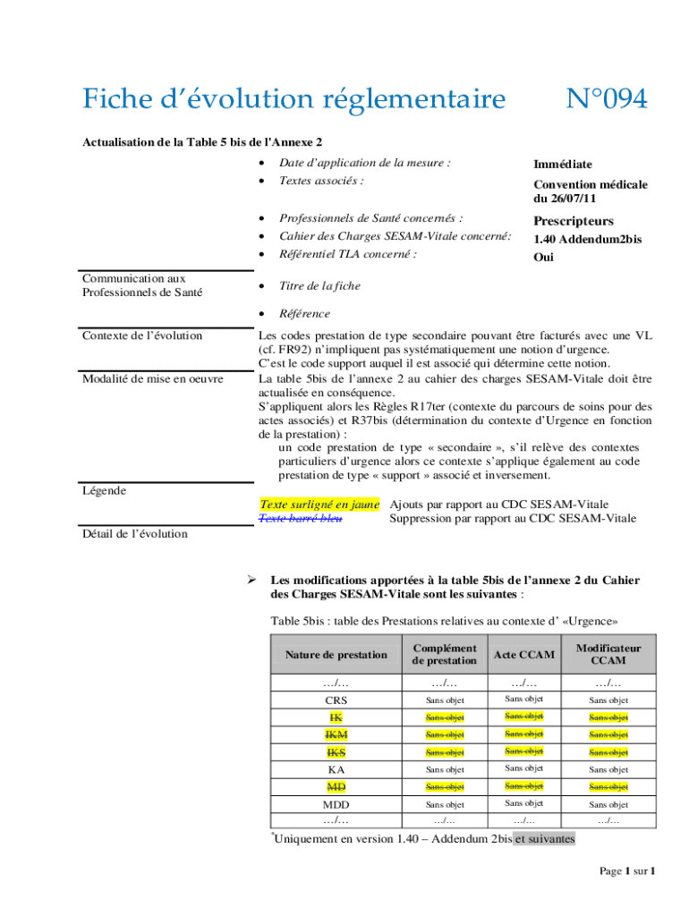 Obtenir le gratuit Actualisation de la Table 5 bis de l'Annexe 2