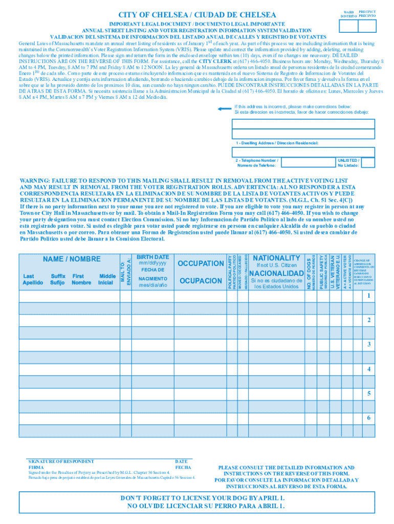 Obtener el gratis Annual Street Listing (Municipal Census)