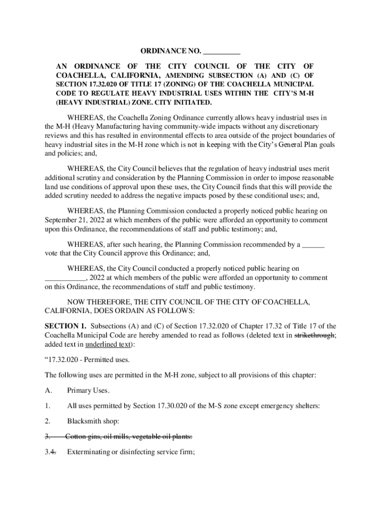 Get the free COACHELLA, CALIFORNIA, AMENDING SUBSECTION (A) AND (C) OF