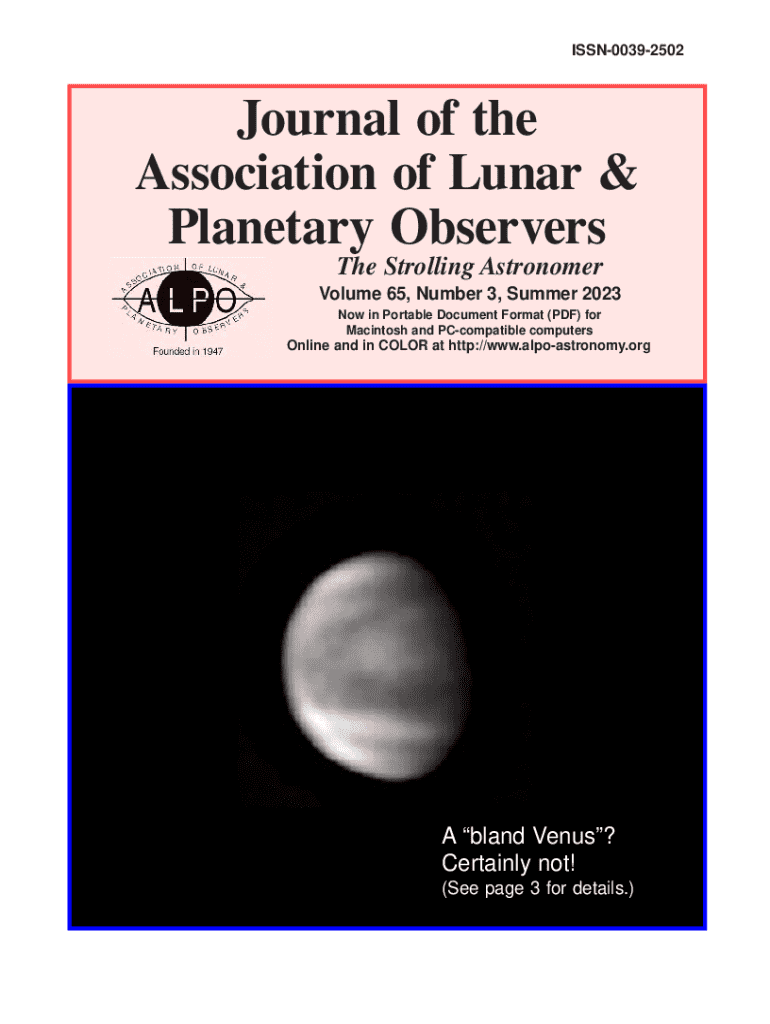ISSN00392502 ISSN00392502Journal of of the the Journal Association of Lunar & & Association of Lunar Planetary Planetary Observers Observers The Strolling AstronomerVolume 65, 65, Number Number 3,