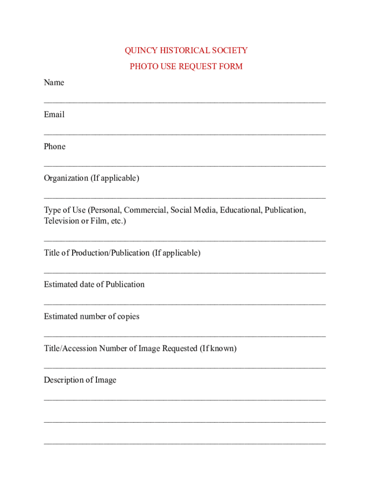 Get the free QUINCY HISTORICAL SOCIETY PHOTO USE REQUEST FORM ...