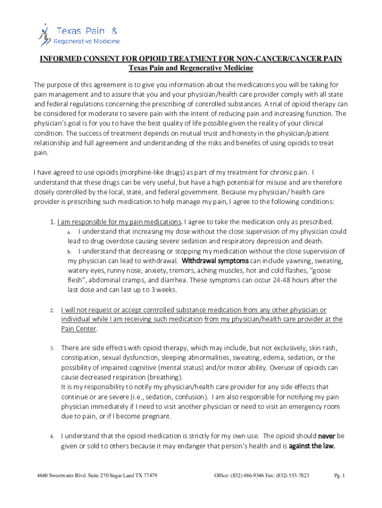 Get the free Informed Consent and Agreement for Opioid Therapy of Pain