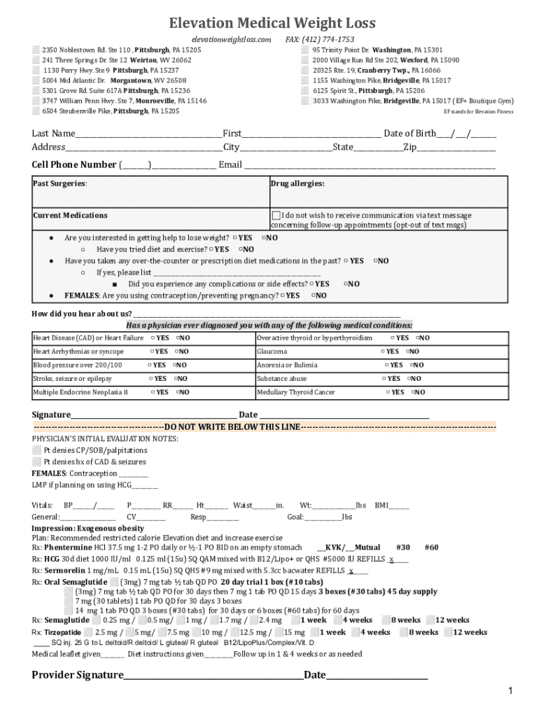 Elevation Medical Weight Loss 2350 Noblestown Rd. Ste 110 , Pittsburgh, PA 15205241 Three Springs Dr. Ste 12 Weirton, WV 260621130 Perry Hwy. Ste 9 Pittsburgh, PA 152375004 Mid Atlantic Dr. Morgantown,