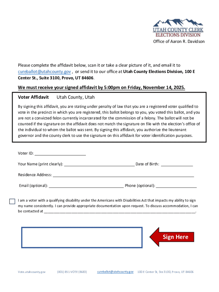 Office of Aaron R. DavidsonWe have received a ballot envelope with your name on it. However, we are unable to count the ballot because either your signature was not on the envelope, or the signature