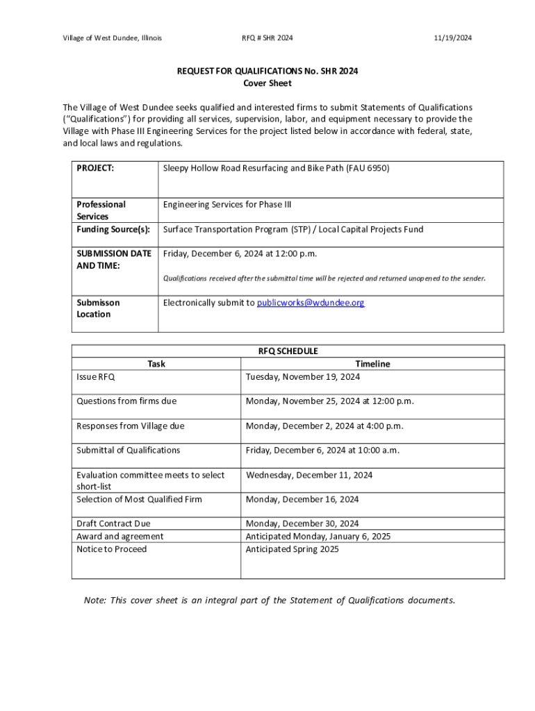 Get the free Sleepy Hollow Road Request for Qualifications-Based ...