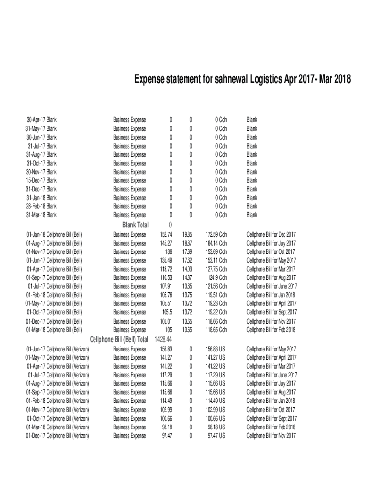 Get the free Expense statement for sahnewal Logistics Apr 2017- Mar 2018