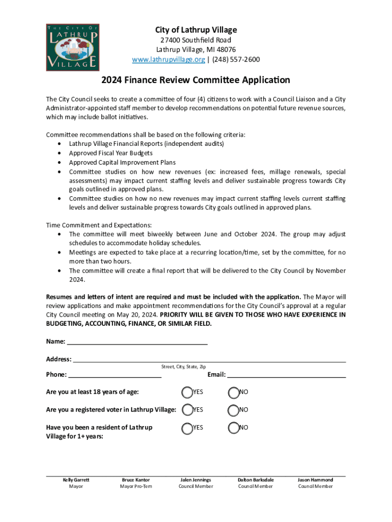 Get the free Finance Review Committee Recommendation to City Council