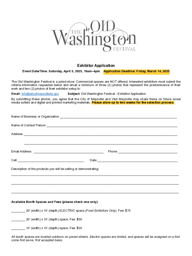2025 Washington Festival Exhibitor Form: A Comprehensive Guide