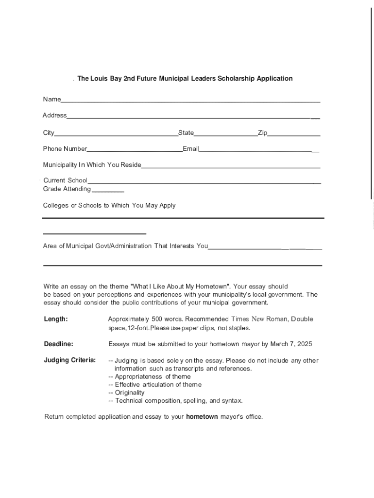 Get the free Louis Bay Future Municipal Leaders Scholarship Competition
