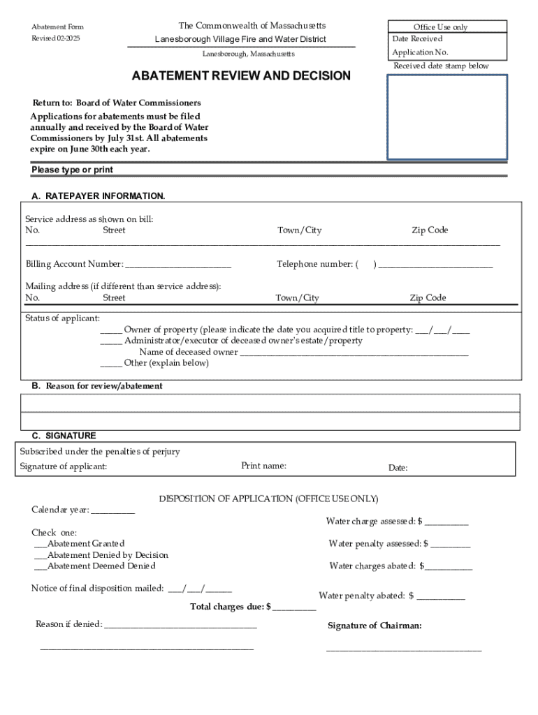 Completing the abatement review and decision form effectively requires careful attention to detail. Follow these step-by-step instructions for submitting a thorough application.