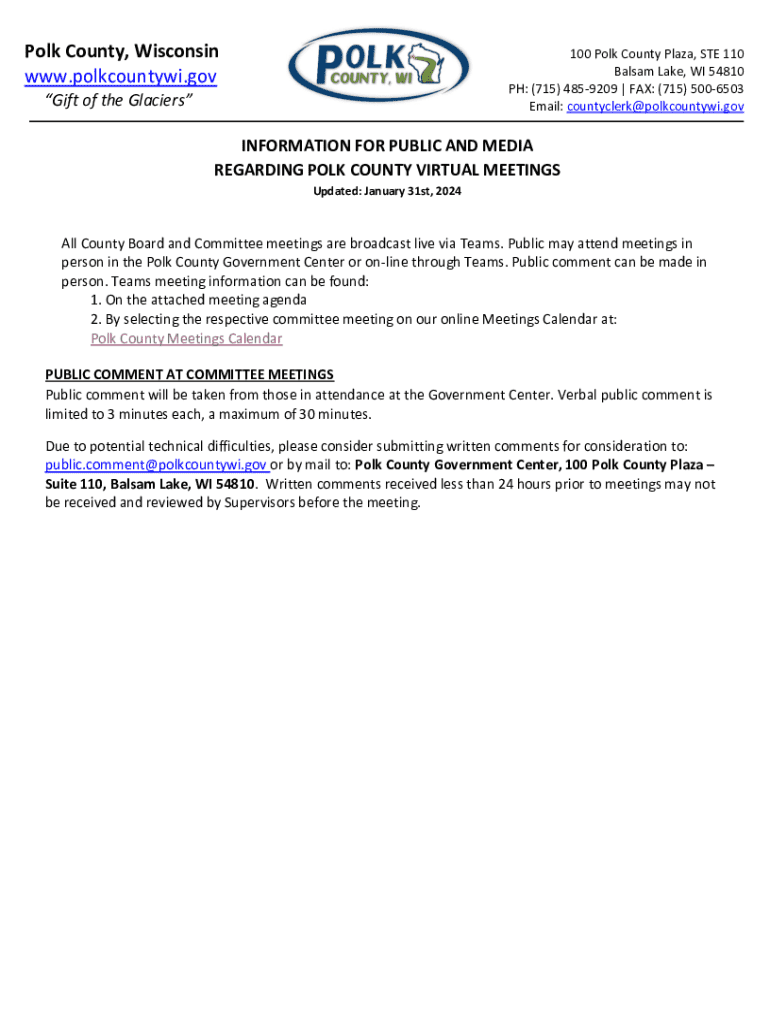 Polk County, Wisconsin www.polkcountywi.gov100 Polk County Plaza, STE 110 Balsam Lake, WI 54810 PH: (715) 4859209 | FAX: (715) 5006503 Email: countyclerk@polkcountywi.govGift of the GlaciersINFORMATION