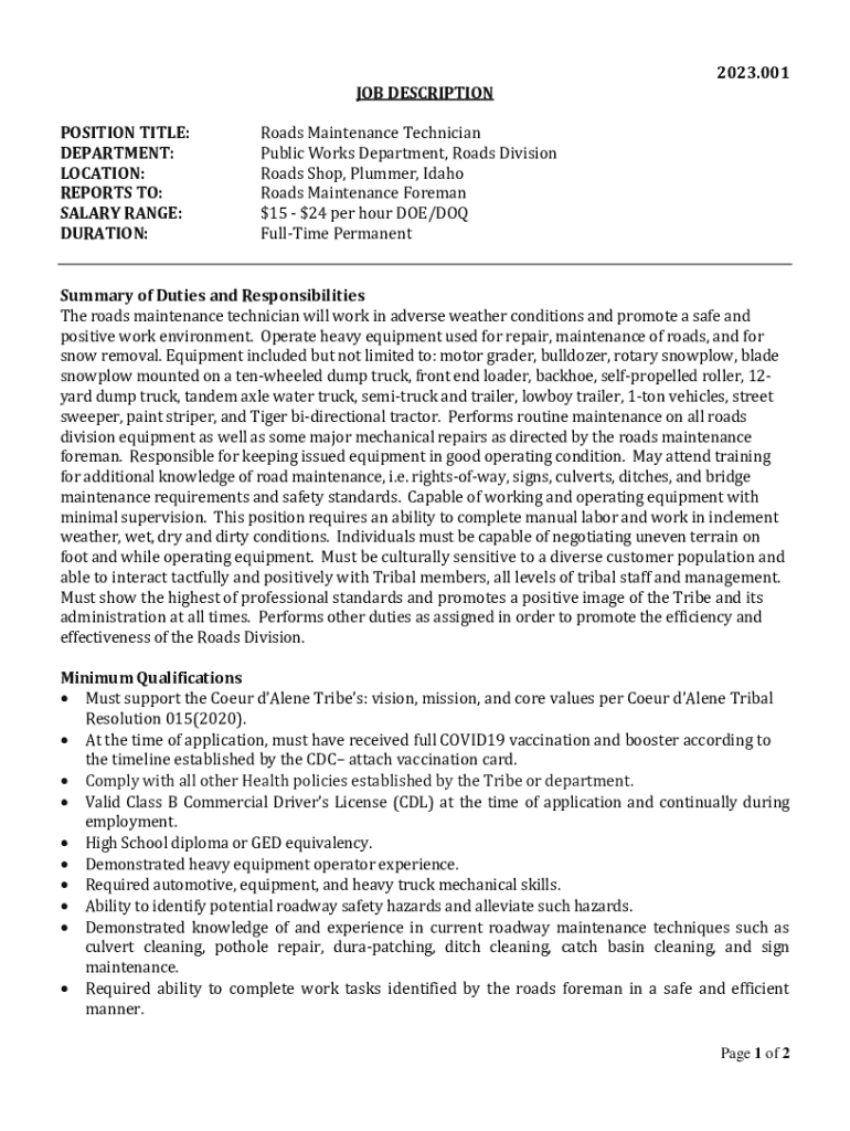 Get the free Roads Maintenance Technician