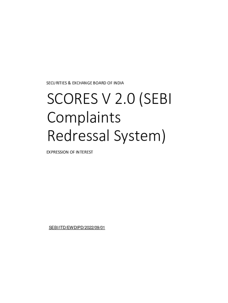 Get the free SCORES V 2.0 (SEBI Complaints Redressal System). EXPRESSION OF INTEREST