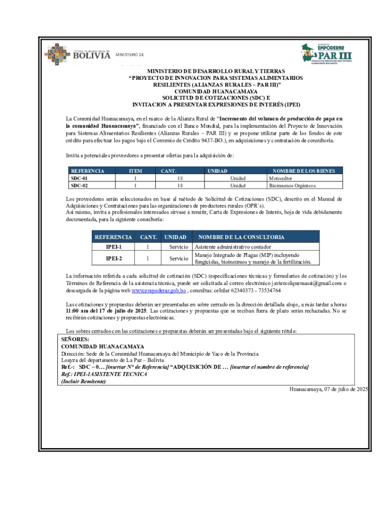 Obtener el gratis documento de solicitud de cotizaciones - obras