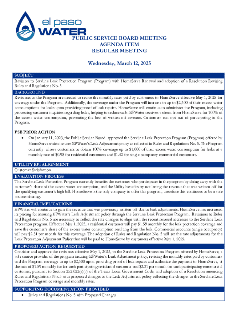 Revisions to the Servline Leak Form are driven primarily by the need for enhancements in process efficiency. By refining the form, utility companies can minimize processing times and improve customer satisfaction. Additionally, as regulations change—such as new water leak protection codes—forms must be updated for compliance, helping to safeguard service providers from potential liabilities.