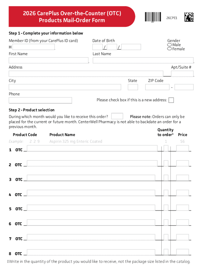 Get the free English 2026 Centerwell Pharmacy OTC Mail-Order Form