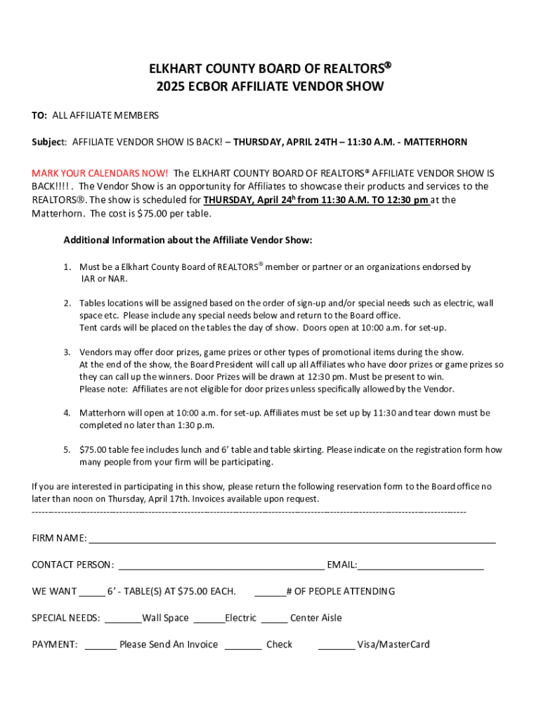 Get the free Subject: AFFILIATE VENDOR SHOW IS BACK