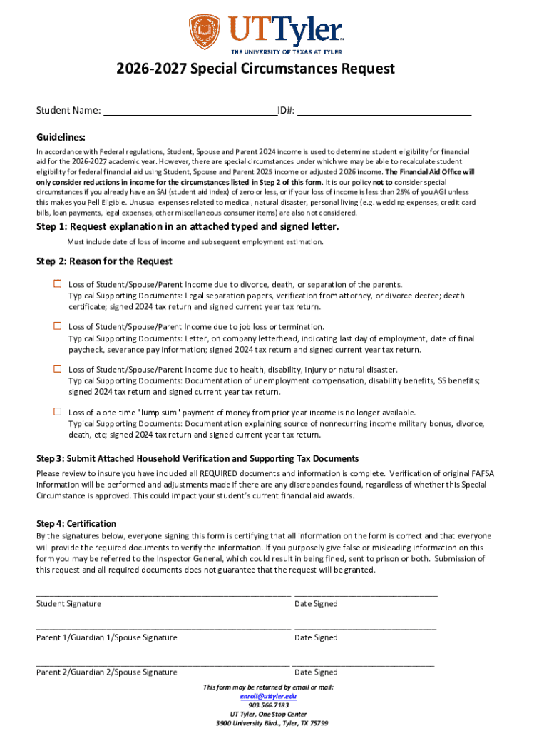 In summary, the 2026-27 Special Circumstances Request Form reflects a student's resilient spirit in navigating educational financing. By understanding the process thoroughly, preparing adequately, and utilizing technology, you can effectively advocate for your financial needs and make informed decisions for a brighter educational future.