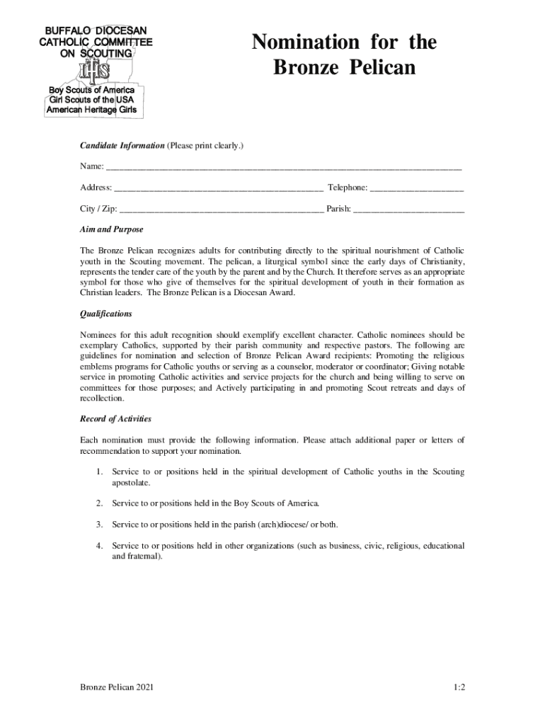 Get the free Buffalo Diocesan Catholic Committee on Scouting Awards