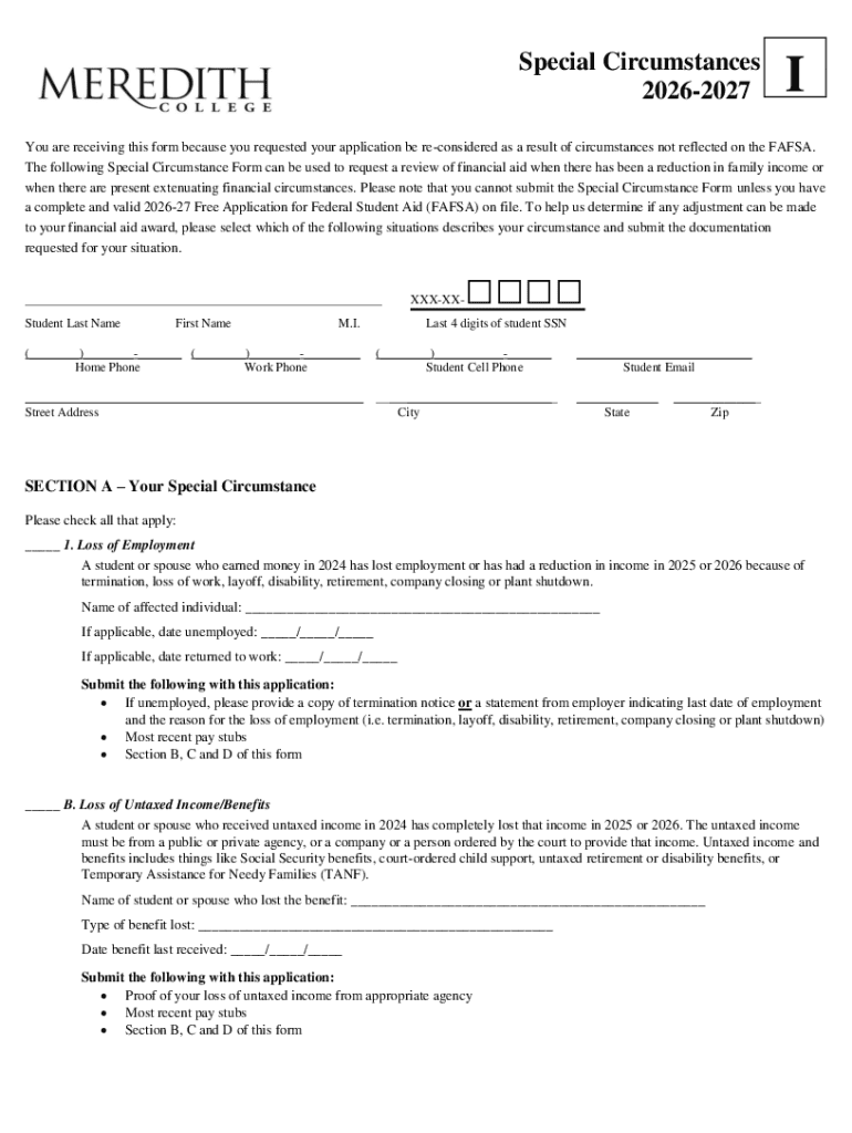 Get the free Special Circumstances Form 2026-2027