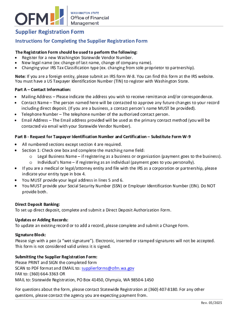 Get the free OFM!II WASHINGTON STATE - Supplier Change Form - ofm wa