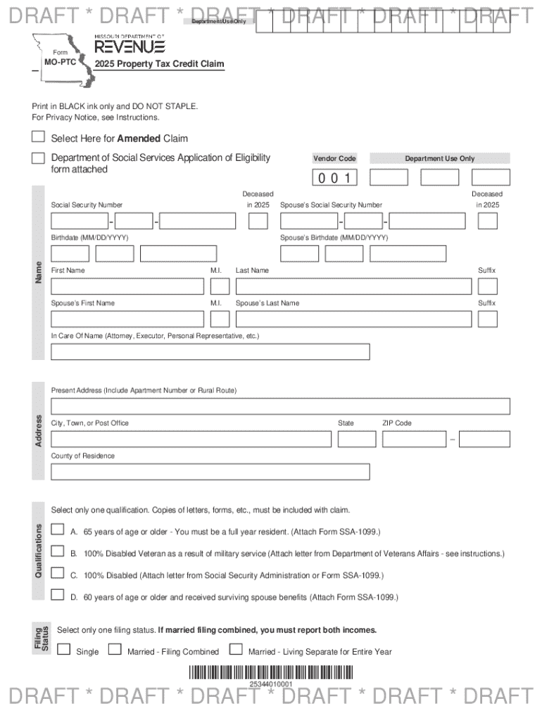 The primary purpose of the Form MO-PTC - 2025 is to facilitate the application process for the Property Tax Credit program in Missouri. This initiative is especially beneficial for elderly residents, those with disabilities, and low-to-moderate income individuals who meet specified eligibility criteria.