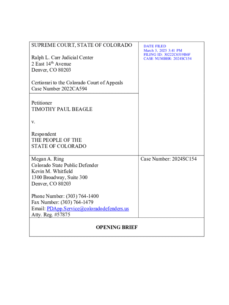 SUPREME COURT, STATE OF COLORADO Ralph L. Carr Judicial Center 2 East 14th Avenue Denver, CO 80203DATE FILED March 3, 2025 3:41 PM FILING ID: 30222C6519B6F CASE NUMBER: 2024SC154Certiorari to the