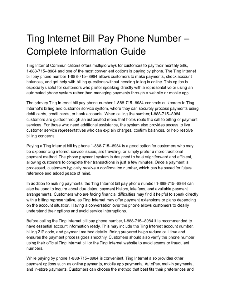 Get the free Complete Guide to Paying Ting Internet Bill by Phone