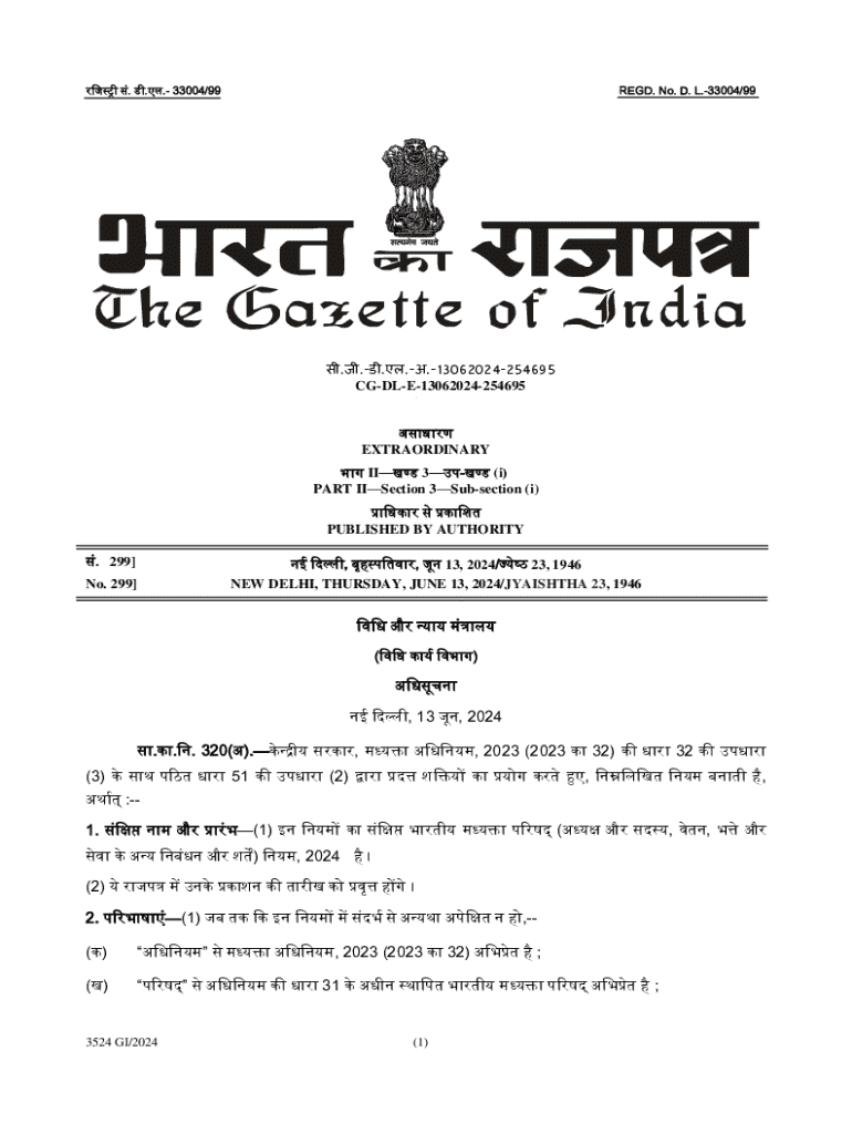 . .. 33004/99REGD. No. D. L.33004/99.....13062024254695 xxxGIDHxxx CGDLE13062024254695 xxxGIDExxx EXTRAORDINARYII 3 (i) PART IISection 3Subsection (i)PUBLISHED BY AUTHORITY . 299] , ,13, 2024/