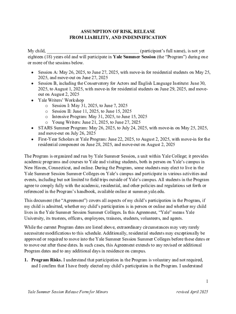 Get the free Yale Summer Session Release Form for Minors.docx - summer yale
