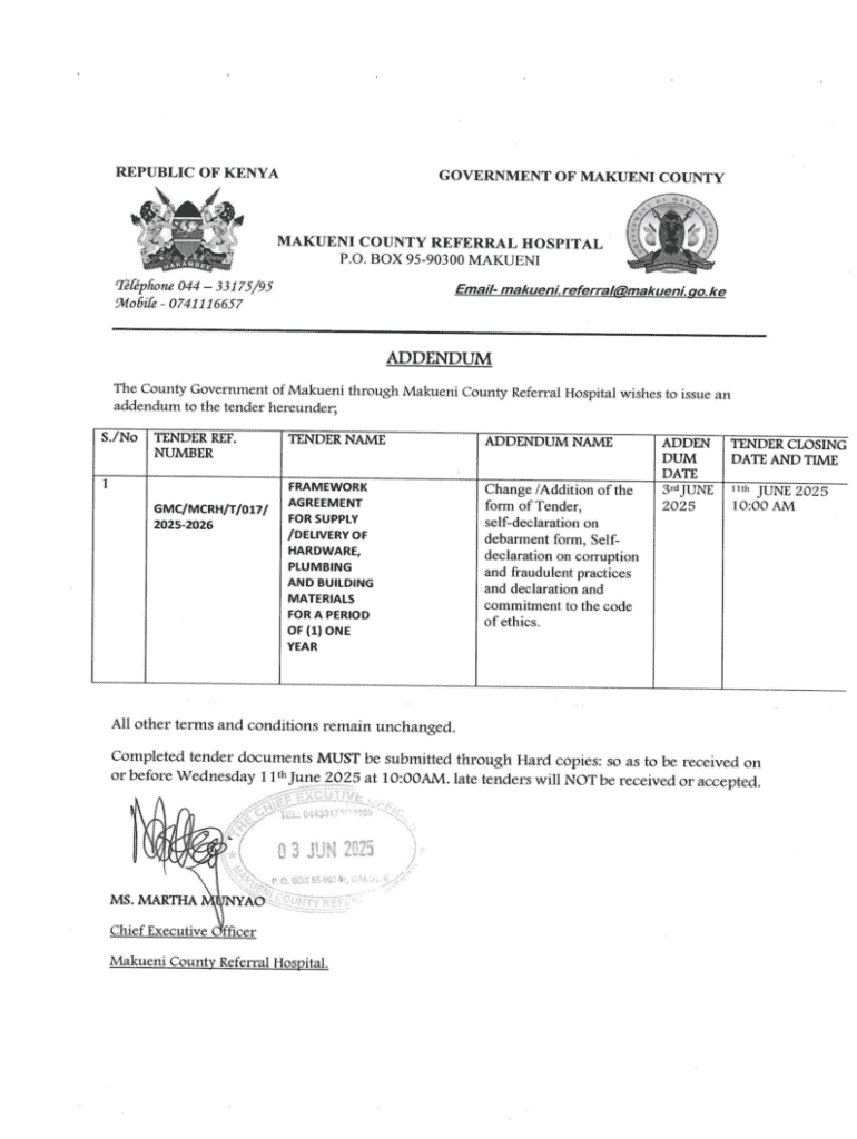 Get the free ADDENDUMS - MAKUENI COUNTY REFERRAL HOSPITAL