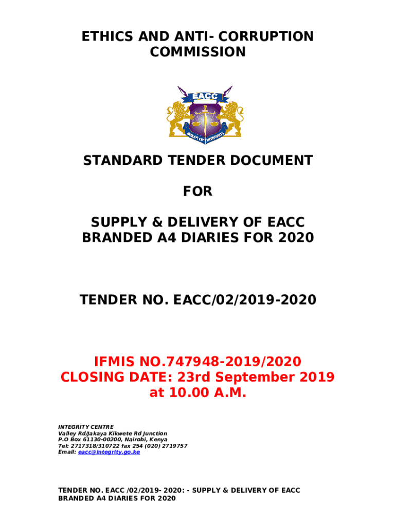 SUPPLY & DELIVERY OF EACC BRANDED A4 DIARIES FOR 2020 template instructions