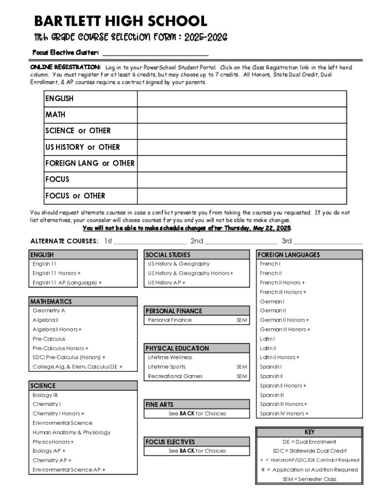 Get the free Course Selection - Bartlett High School