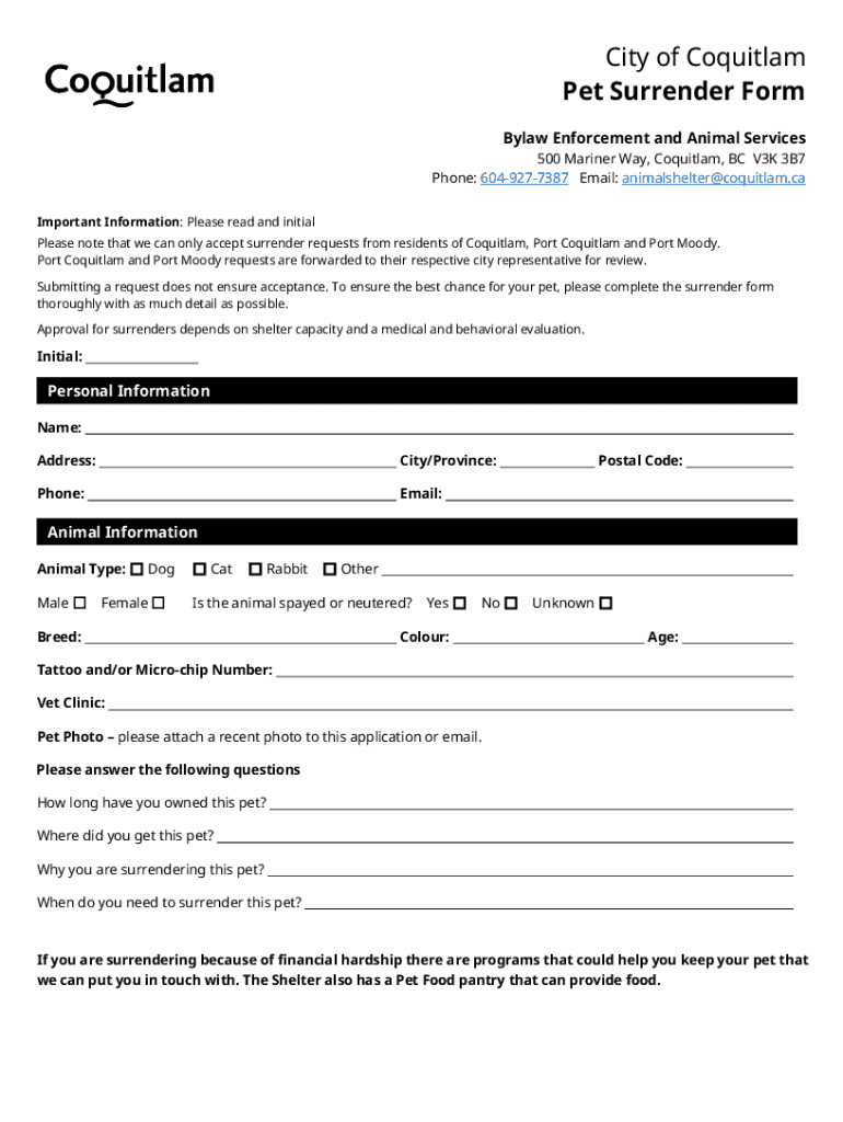The City of Coquitlam Pet Form: Your Comprehensive Guide