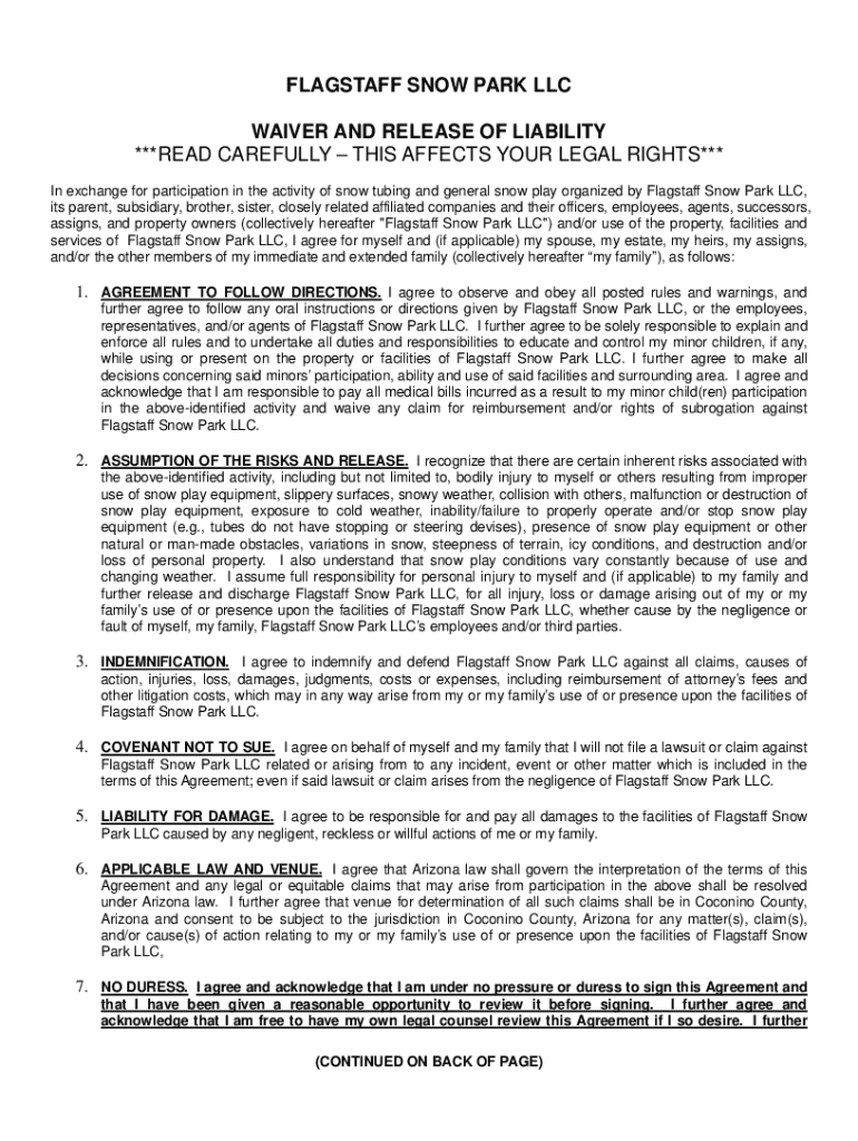 Flagstaff Snow Parksnow Tubing Form: How-to Guide