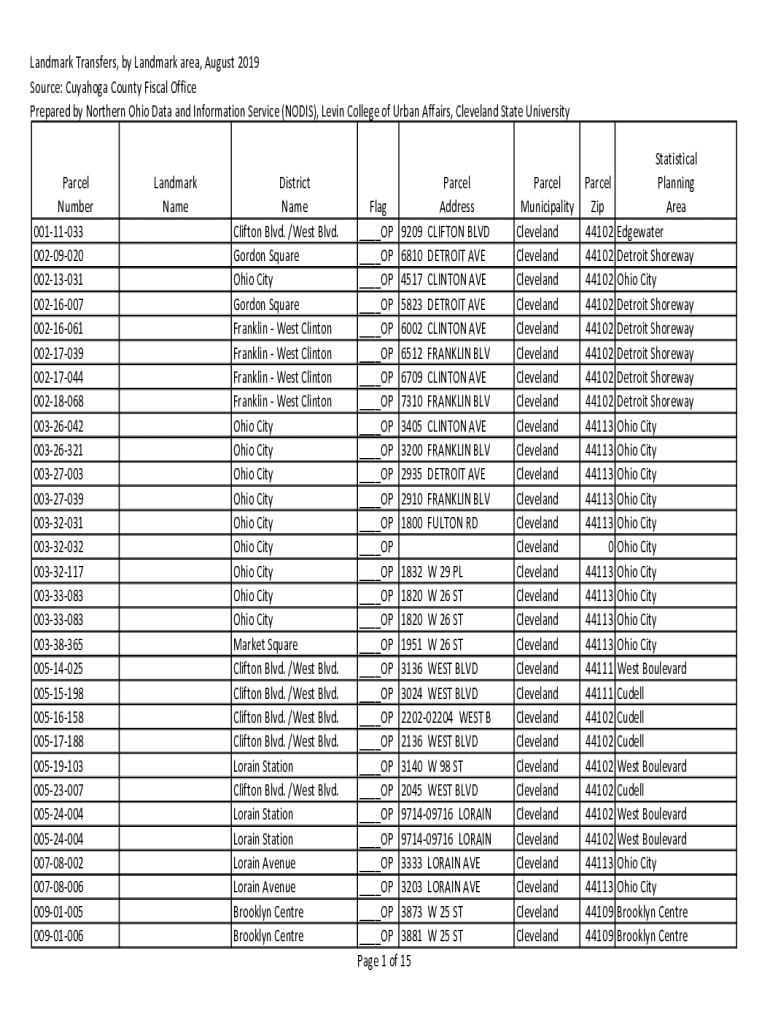 Get the free Landmark Transfers, by Landmark area, August 2019