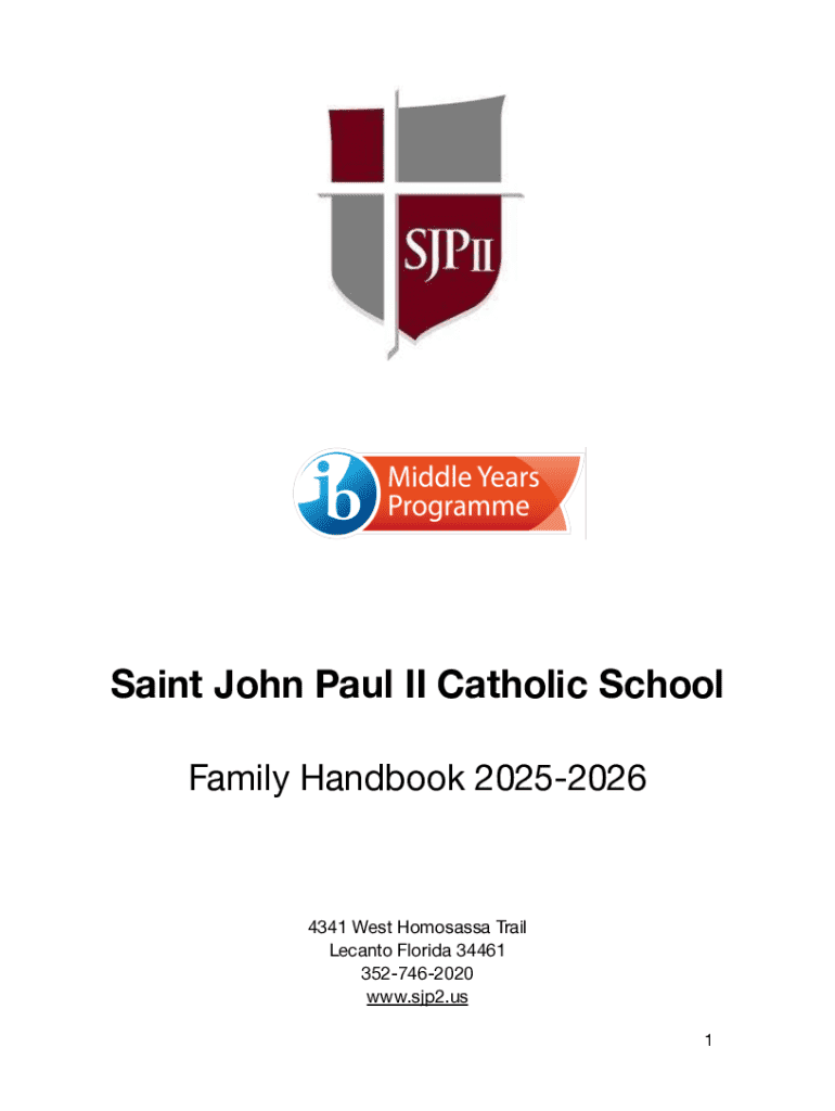 Saint John Paul II Catholic School Family Handbook 202520264341 West Homosassa Trail Lecanto Florida 34461 3527462020 www.sjp2.us 1Dear School Families, Welcome back to school for the 20252026 school