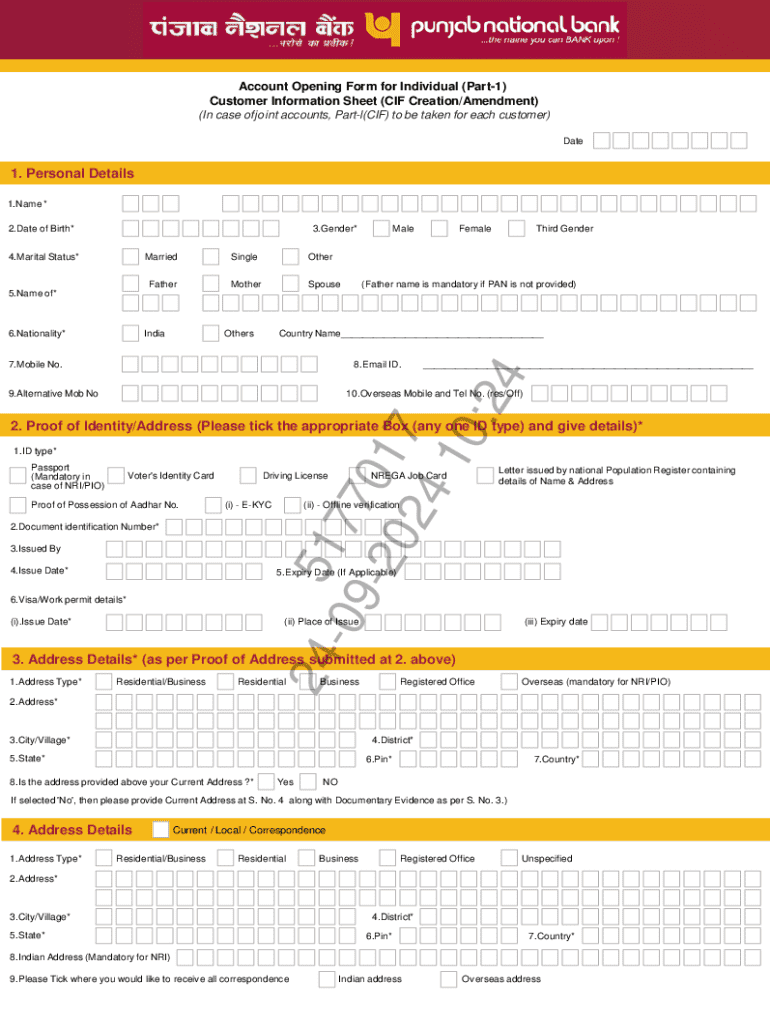 Get the free sbi account opening form for resident individuals part 1