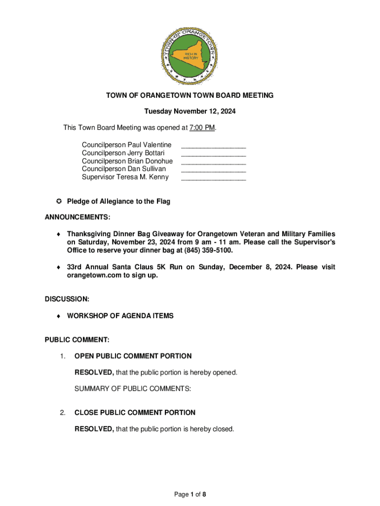 Eligibility to submit the Town Board Page 9 Form usually requires that the requester be a resident or business owner within the municipal jurisdiction. Timing is also critical; most submission processes will have specific deadlines that align with town board meeting schedules, meaning it's imperative to be aware of when submissions are due to facilitate timely review and approval.